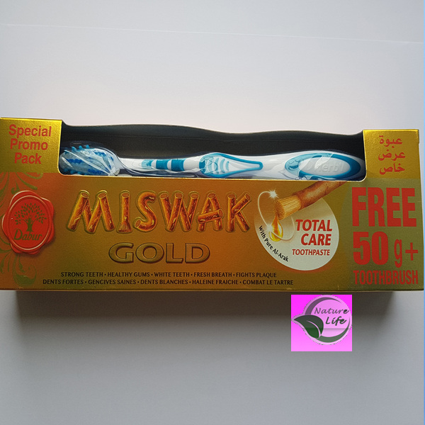Зубная паста Dabur Miswak Gold 120+50г была создана специально для эффективного очищения и ухода за полостью рта. «Комплексный уход» обладает прекрасными антибактериальными свойствами, устраняет плохой запах и надолго оставляет ощущения свежести. Средство удаляет остатки пищи, великолепно отбеливает зубную эмаль и укрепляет её.