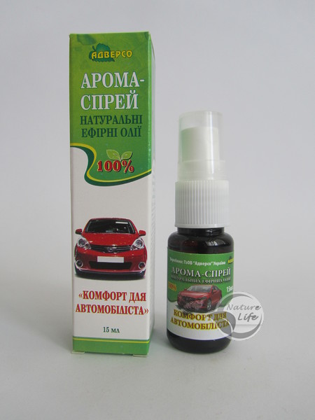 Арома-спрей «Комфорт для автомобилиста» Улучшает самочувствие водителя, бодрит, повышает скорость реакции, снимает усталость при длительном пребывании за рулем, дезодорирует воздух в машине и нейтрализует в нем вредные вещества.