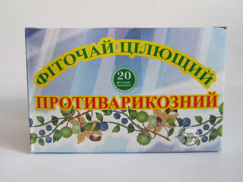 Фиточай целебний Противоварикозный снимает отёки и боль, уменьшает проницаемость капилляров, снижает вязкость крови, уменьшает переполнение кровью вен, повышает их тонус (особенно, если нарушена венная проходимость). Воздействие состава обусловлено уникальным соотношением частей, в сумме являющихся необходимым энергетическим аккордом, который нейтрализует причину варикозного расширения вен. Восстановление нормальных энергетических характеристик организма сопровождается ликвидацией патологических изменений в сосудистой системе.