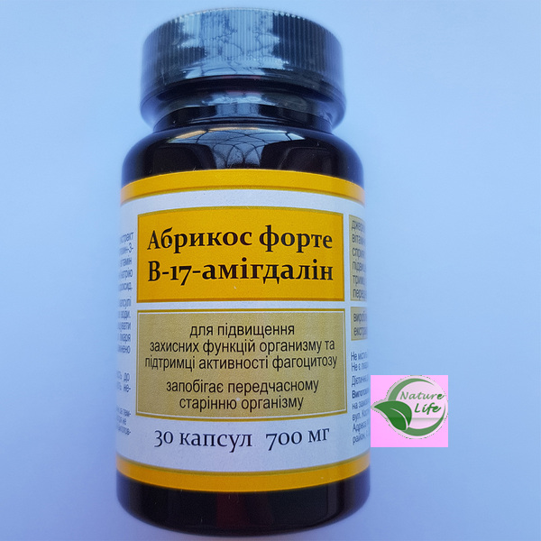 Витера Абрикос форте В-17 амигдалин - комплекс экстрактов абрикосовых косточек и зеленого чая. Обладает высокой антиоксидантной активностью. Предотвращает появление опухолей в организме, и развитие патогенных процессов.