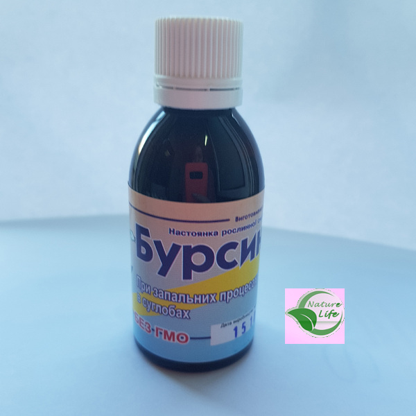 Настойка Бурсина оказывает противовоспалительное, противоотечное, регенерирующее и обезболивающее действие. Способствует рассасыванию патологической жидкости, которая собирается в околосуставной сумке пораженного сустава с возобновлением его двигательной функции.