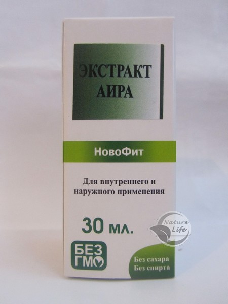 Показания: Экстракт Аира проявляет противовоспалительные, обезболивающие, отхаркивающие, желчегонные, антибактериальные свойства. Улучшает ферментативное пищеварение, активизирует желчевыделительну функцию печени, повышает тонус желчного пузыря и увеличивает мочеотделение. Применяют при расстройствах пищеварения и нарушении секреции желудочного сока (нормализует выделение соляной кислоты, устраняет изжогу), воспалении кишечника, при кишечных коликах, вздутии живота. Эффективен при физической перегрузке (способствует нарастанию мускулатуры), после тяжелых болезней и операций, в преклонном возрасте улучшает зрение, слух, память. Экстракт Аира в гинекологии используют при нерегулярных, болезненных, скудных месячных, вторичной аменорее на почве недостаточной функции яичников, при ослаблении либидо и патологическом ходе климакса, понижает повышенное артериальное давление. Помогает избавиться от курения. Как противовоспалительное, жаропонижающее и отхаркивающее средство применяют при гриппе, бронхите и пневмонии.