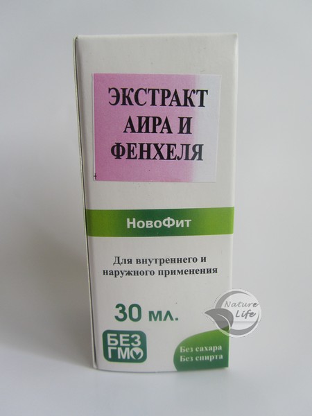 Состав: кореневище аира – 90%, фенхель 10%, вода, пропиленгликоль.