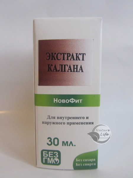 Экстракт Калгана - оказывает противовоспалительное, вяжущее, бактерицидное, кровоостанавливающее действия. Поэтому его широко используют для лечения метеоризма, энтероколита, гастрита, язвенной болезни, желудочных, кишечных и маточных кровотечений, цистита, дизентерии и диареи.