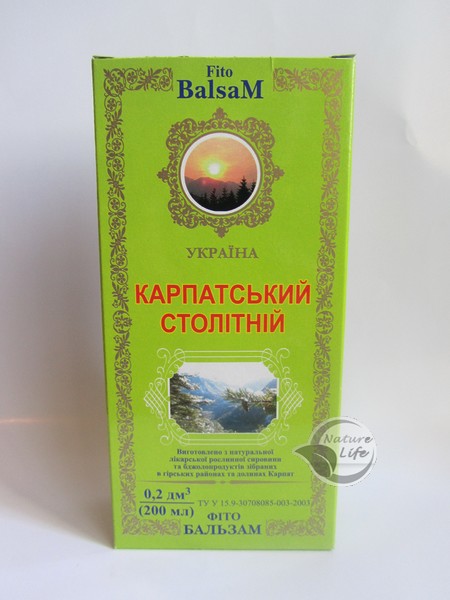 Фитобальзам Карпатский Столетний рекомендуется как поливитаминное очищающее, противовоспалительное, общеукрепляющее и адаптогенное средство для здоровья и долголетия.