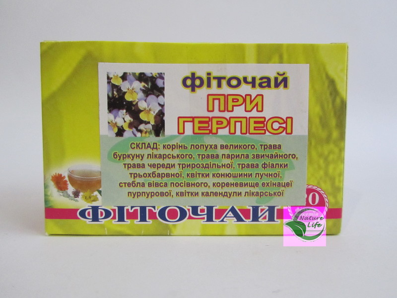 При первом контакте с (Вирусом прорстого герпеса) ВПГ-1 может вызвать поражение не только слизистой губ, но и всего носогубного треугольника включая полость носа, что наблюдается не только в детском возрасте. В дальнейшем рецидивы инфекции связаны с ослаблением иммунной защиты организмы. Фиточай "При герпесе" повышает иммунитет, создает неблагоприятные условия для вируса герпеса, выводит из организма продукты жизнедеятельности вируса уменьшает боль и зуд, способствует быстрому заживлению кожных проявлений. Особенно яркое действо фиточая проявляется у детей, пожилых, ослабленных людей. Травяной сбор стимулирует защитные свойства организма, гармонизирует обмен веществ, регулирует деятельность всех органов и систем организма, способствует устойчивости к неблагоприятным факторам внешней среды, более быстрому выздоровлению.