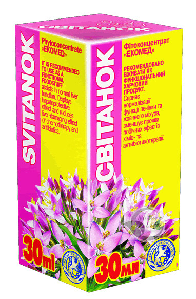 Действие: в фитоконцентрате Свитанок наилучшим образом объединяется действие всех групп средств, которые влияют на печень и желчевыводящие пути, он увеличивает секрецию желчи и помогает ее выходу в двенадцатиперстную кишку (желчегонное действие), улучшает метаболизм клеток печени (гепатопротекторное действие), помогает растворять желчные камни (холелитолитическое действие). Кроме того, имеет выраженный антиоксидантный эффект.
