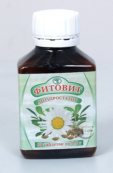 Фитовит — Антипростатит диетическая добавка к пище, витаминно-растительный комплекс способствует восстановлению работы предстательной железы, мочевого пузыря и мочевыводящих путей, уменьшает риск возникновения аденомы и других воспалительных заболеваний. Уменьшает воспалительные проявления в предстательной железе и мочевом пузыре, обладает антибактериальной активностью, предупреждает образование камней, выводит шлаки и токсины, способствуя восстановлению утраченных функций, нормализует и поддерживает минеральный и водно-солевой баланс.