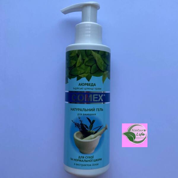 Натуральный гель для умывания Comex для сухой и нормальной кожи на основе аюрведических рецептов с экстрактами индийских трав, Алое вера и органического кокоса. Гель олично очищает поры помагае справиться с воспалениями, нормализует уровень PH и водный баланс, освежает, отлично очищает кожу от макияжа, не оставляя ощущения стянутости.