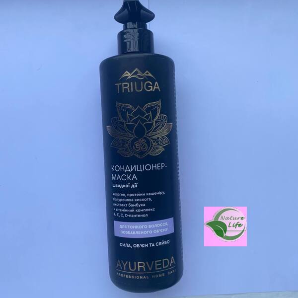 Кондиционер-маска "Сила, Объем и Сияние" Triuga быстрого действия сочетает в себе свойства кондиционера и маски. Активный комплекс обеспечивает интенсивный уход и предоставляет кондиционирующий и антистатический эффект. Облегчает расчесывание и делает волосы послушными. Подходит для частого использования.