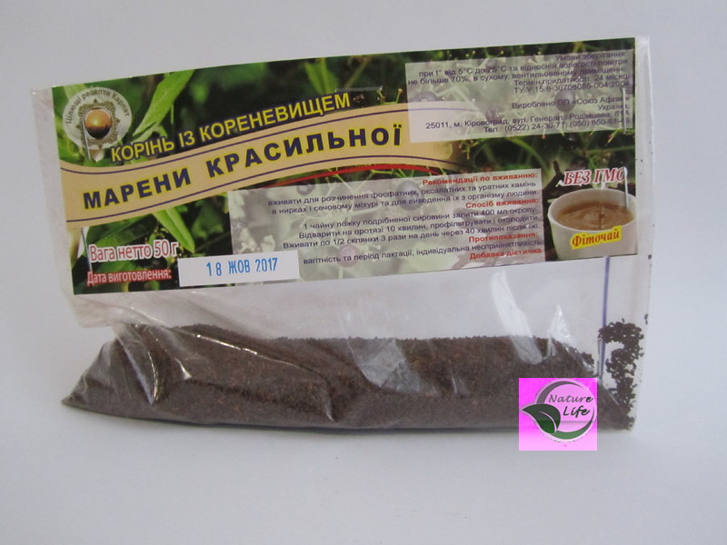 Состав: корень с корневищем марены красильной.