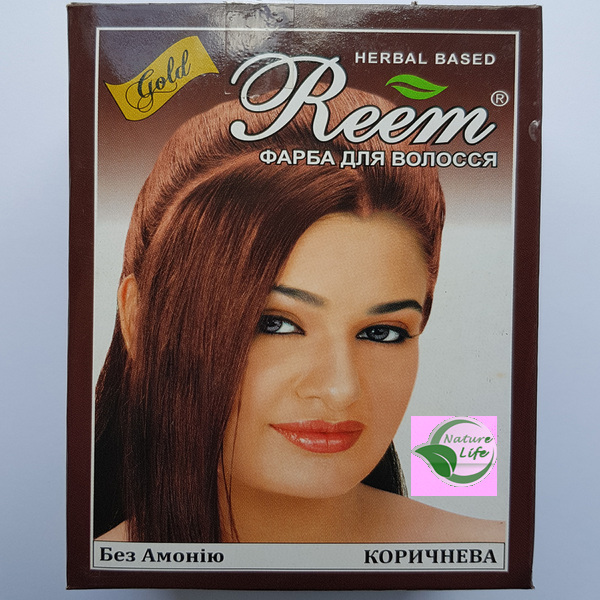 Натуральная краска на основе хны для окрашивания волос Reem Gold Коричневая без амиака, отлично закрашивает седину. Защищает и ухаживает за волосами, придавая им естественную красоту. Натуральная краска на основе хны придает блеск, а также улучшает структуру волос. Краска не содержит химических веществ. Подходит для всех типов волос.