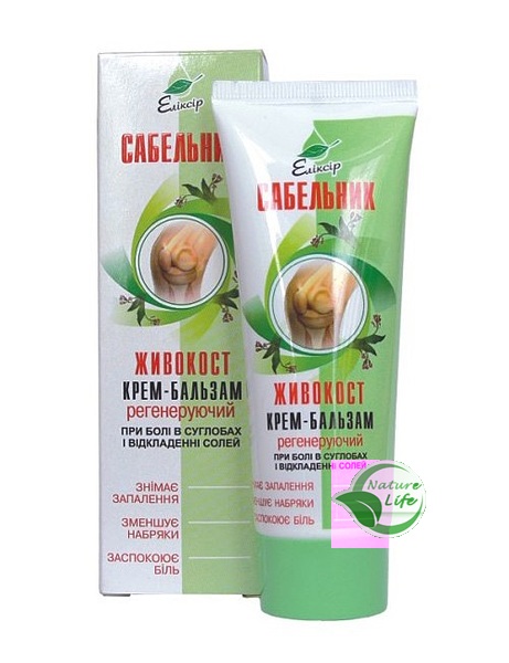 Крем-бальзам Сабельник — Живокост регенерирующий способствует улучшению кровообращения в месте нанесения, насыщению тканей кислородом, обладает противоревматическим, противовоспалительным, болеутоляющим и противоотечным эффектом. Не содержит канцерогенных веществ, применяется при нарушениях функций опорно-двигательного аппарата, а также после бытовых и спортивных травм.