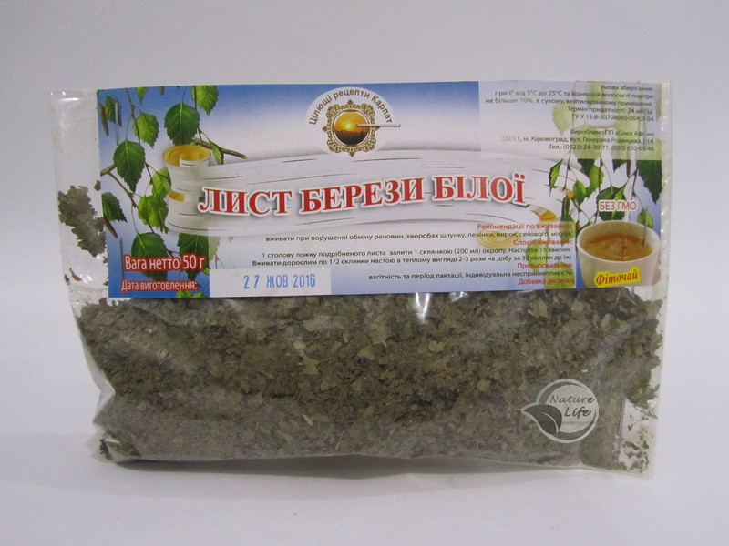 Состав: листья берёзы измельченный 100%.