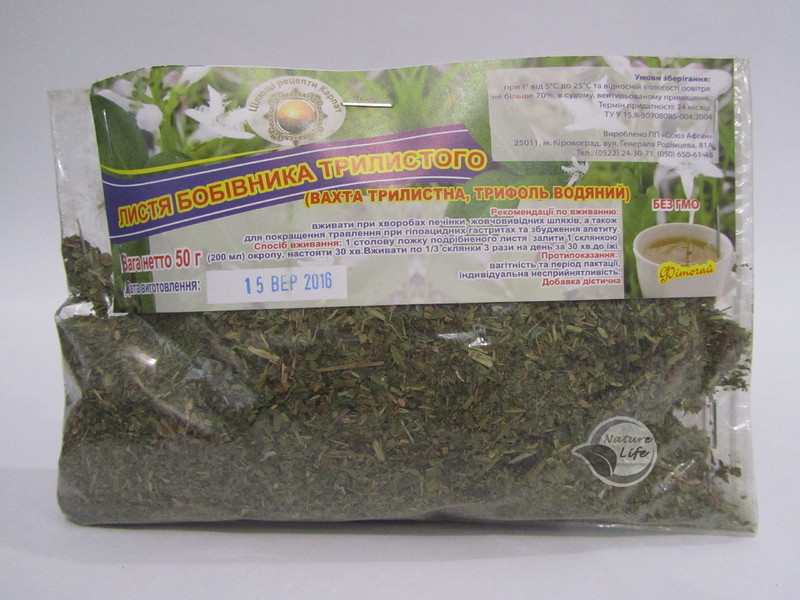 Состав: Лист вахты трехлистной 100%.