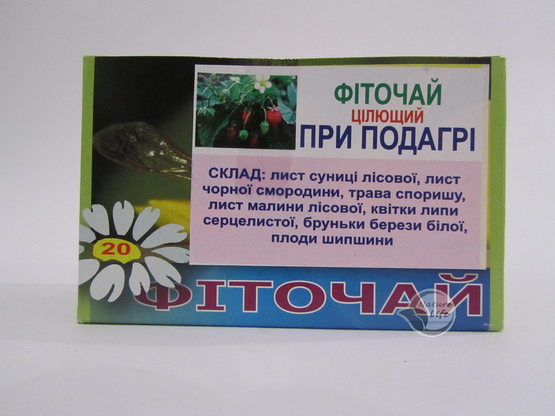 Фиточай при подагре способствует выведению из организма мочивой кислоты, оказывает мягкое мочегонное действие, растворяет и выводит соли. Оказывает противовоспалительное, антимикробное, кровоочистительное действие. Во время приёма чая при подагре уходит скованность движений и приступы подагрических болей.