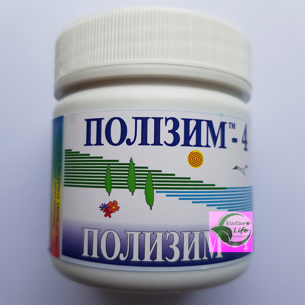«Полизим - 4» комплексная полиферментная формула. Производится на основе натуральных ферментов и лекарственных растений Крыма: бессмертник, боярышник, вербена, люцерна. Консервант – пчелиный мëд.