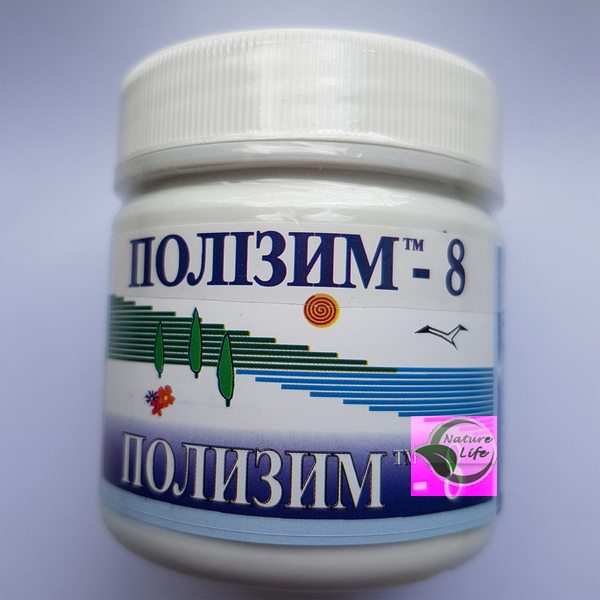 «Полизим - 8 » - это обогащенная костно-мышечная формула. Производится на основе натуральных ферментов и лекарственных растений Крыма: лопух, хвощ полевой, люцерна посевная. Консервант – пчелиный мëд.