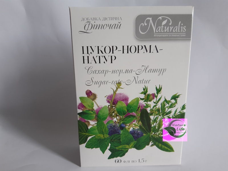 Состав: черники листья и побеги, лопуха корень, спорыша (горца птичьего) трава, шиповника плоды, мяты перечной листья, козлятника лекарственного (галега) трава, чай зеленый, березы листья.