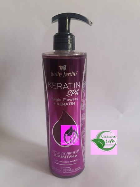 Шампунь тонизирует и очищает кожу головы, оставляя волосы свежими и здоровыми надолго. Кератин, проникая в самую глубь волоса, реконструирует и улучшает его структуру. Шампунь насыщает волосы блеском и сиянием, предотвращает жирность.