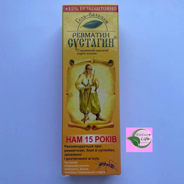 Сустагин гель - бальзам Ревматин рекомендуется как вспомогательное средство, облегчает боль, снимает отечность, улучшает кровообращение. Гель-бальзам помогает снять воспаления в суставах и мышцах. Уникальное сочетание лечебных трав и других компонентов стимулирует быстрое восстановление суставных тканей, улучшает кровообращение, препятствует возникновению боли, снимает воспаление. Ускоряет процесс восстановления после вывиха, перелома, травмы, растяжения мышц и сухожилий. Приглушает боль и способствует регенерацию тканей.