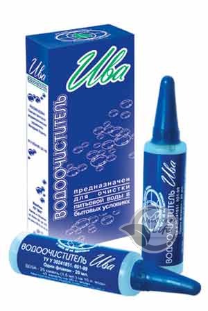 Форма выпуска:Водоочиститель «ИВА»: в коробке два флакона с капельницей по 20 мл, рассчитанный на очистку 300 л воды.