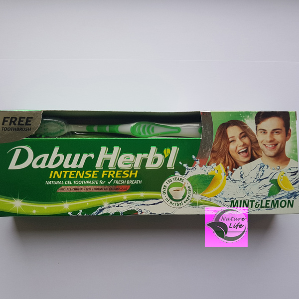 Зубная паста - Мята и лимон - Свежий гель Dabur Herbl 150гр+щетка - для свежего дыхания, препятствует образованию зубного налета.